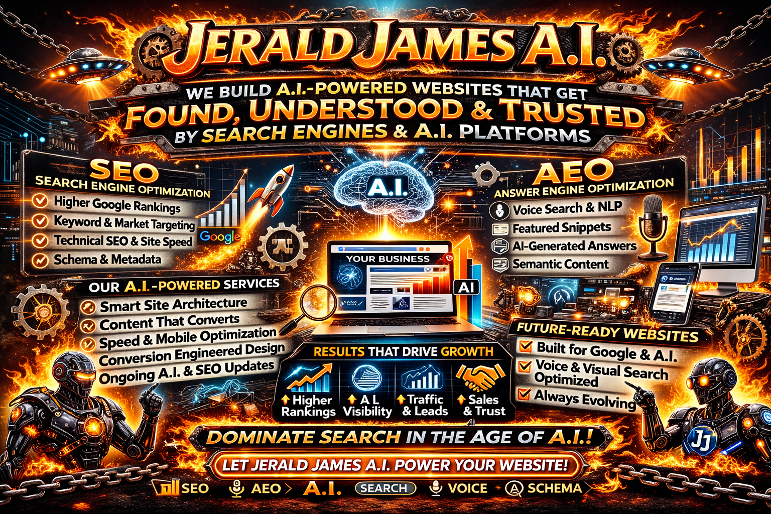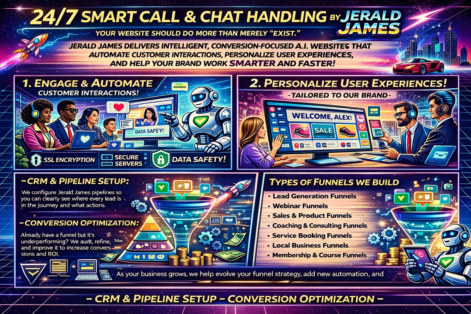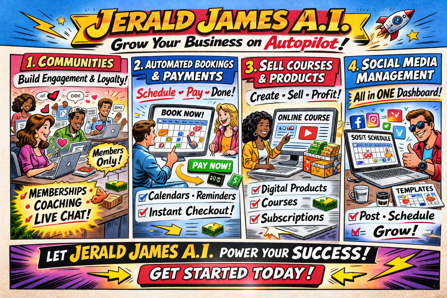 Whether you’re scaling locally or nationally, Jerald James A.I. helps you: